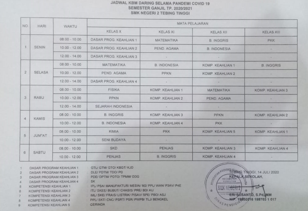 Pembelajaran daring dilaksanakan dengan jadwal di bawah ini: